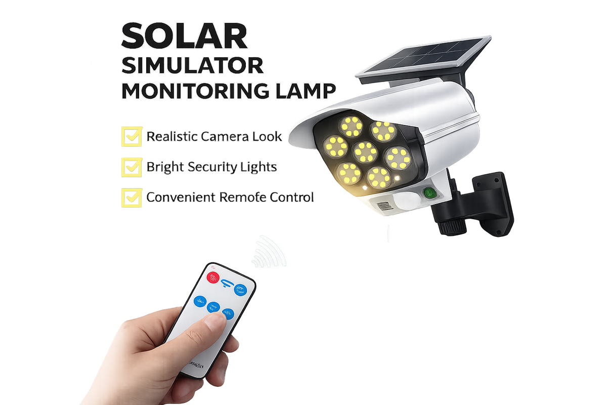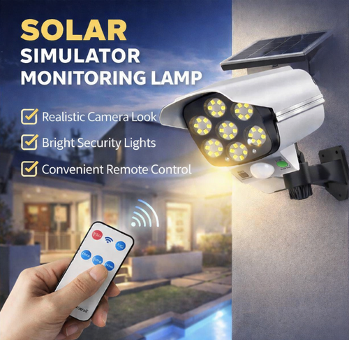 Experience advanced security with our solar-powered motion detection light. Featuring a realistic camera design that deters intruders, bright LED illumination, and convenient remote control operation.